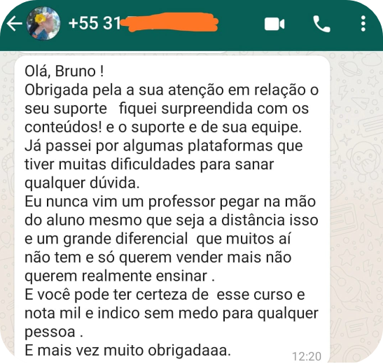 Você pode tirar todas as dúvidas por e-mail e Whatsapp sempre que precisar.